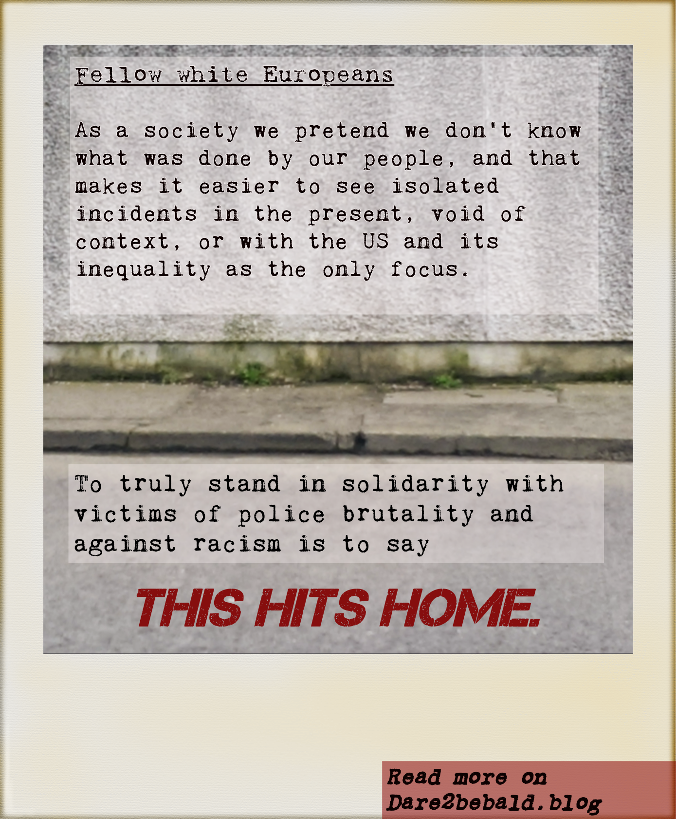 this hits home Dare to be b@ld July 5, 2020 Published by Dare to be b@ld View all posts by Dare to be b@ld Published July 5, 2020